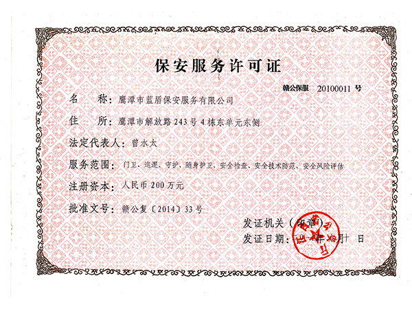 鷹潭市藍(lán)盾保安服務(wù)有限公司